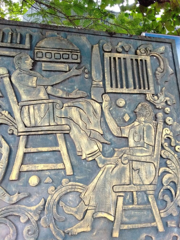 I enjoy and cherish my moments at SM Street. There is a bust of SK Pottekkat at the entrance of the Street. There are numerous stone chairs on the sides of the entrance for the visitors to sit and relax. In addition to this, some images from the novel “Oru Theruvinte Kadha” are sculpted on the walls of the street near the entrance. Some excerpts from the book are also engraved on the walls.